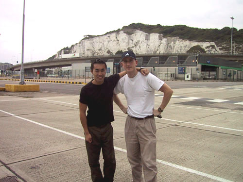 Brendan and Tim at the start of our Trip - The White cliffs of Dover |