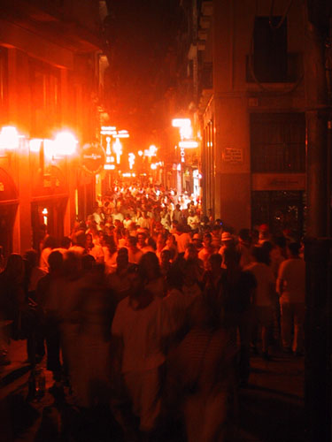 The narrow street running from the main Square towards the park. How does Pamplona support so many Bars? |