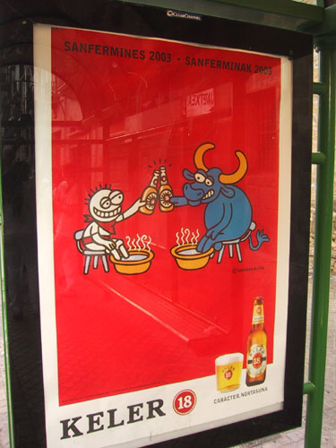 an amusing Billboard (of course in reality, the bull gets slaughtered in the ring while the guy gets slaughtered in the bar...) |