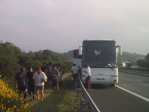 Our bus broke down thanks to Jane's "Pyrenees curse" |